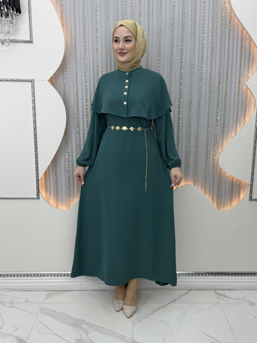 Pelerin önden taş düğmelidir