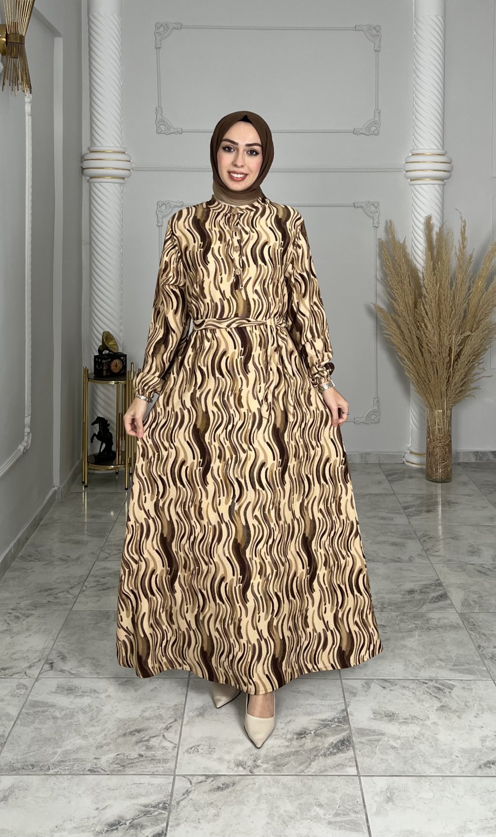 Belgin Elbise Kahverengi Bej