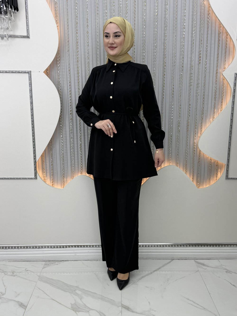 Bensu Pantolonlu Takım Siyah