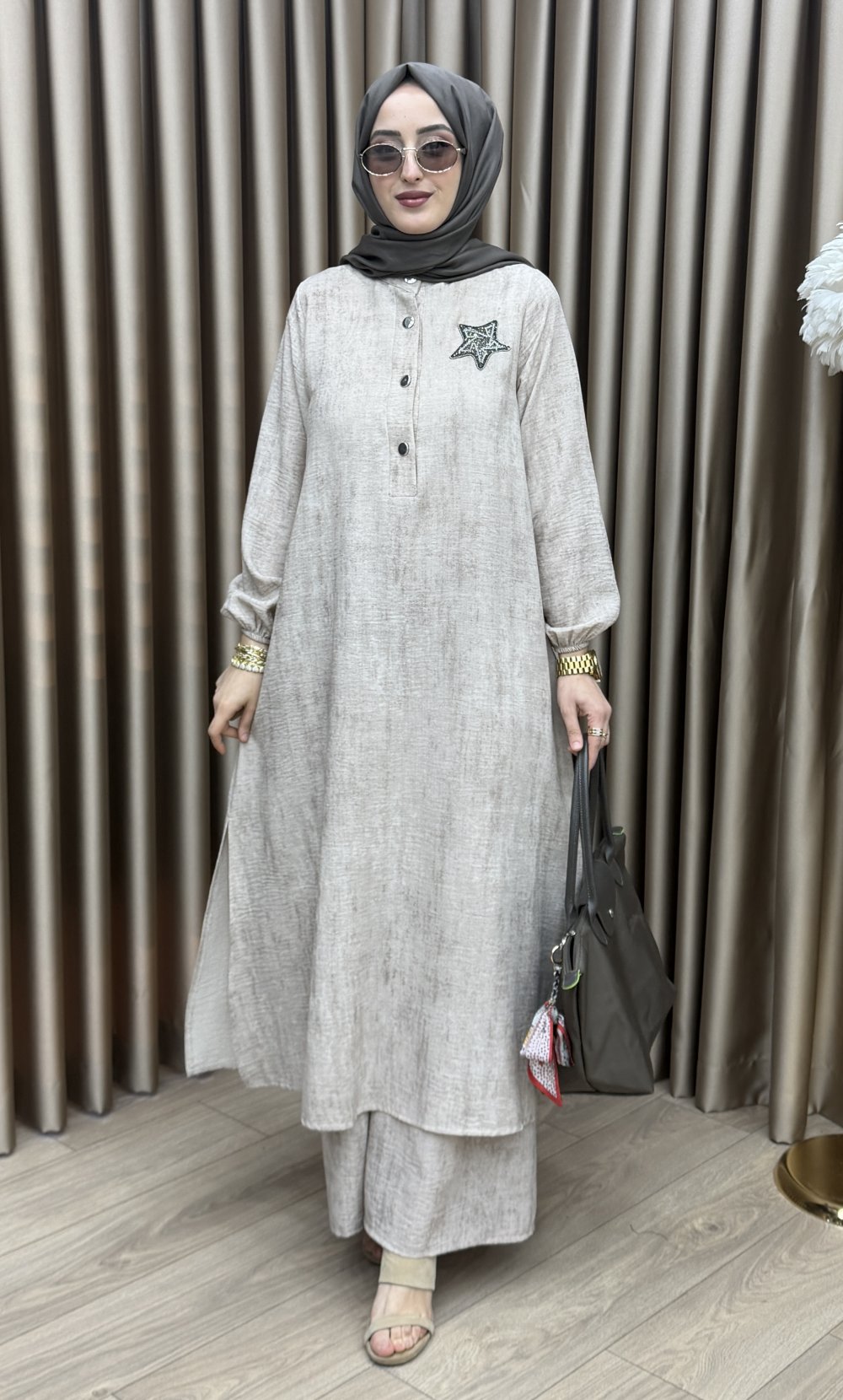 Rahatlık ve şıklığı bir araya getiren Birce Takım,sade ama zarif duruşuyla günlük kombinlerinizi güçlendiriyor. Yumuşak kumaşı ve esnek yapısı sayesinde gün boyu konfor sunarken, modern kesimiyle stil sahibi bir görünüm yaratır.