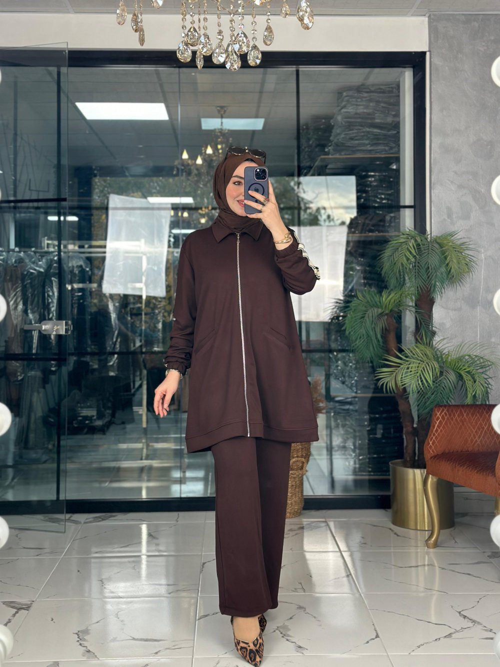Kumaşı esnek kristal kumaştır. Pantolon beli lastiklidir. Önü hırkalıdır.