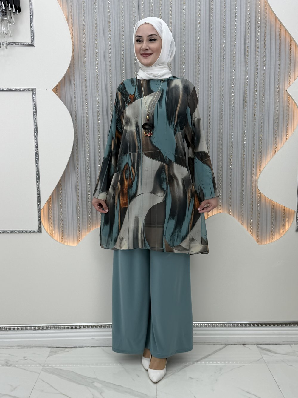 Dalga Pantolonlu Takım Turkuaz
