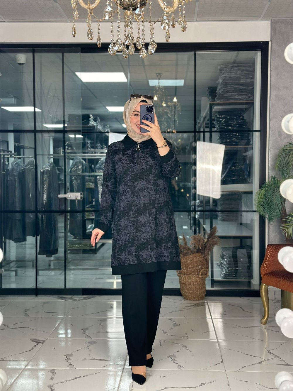 Kumaşı oyshodur. Önü yarım fermuarlıdır. Pantolon beli lastiklidir.