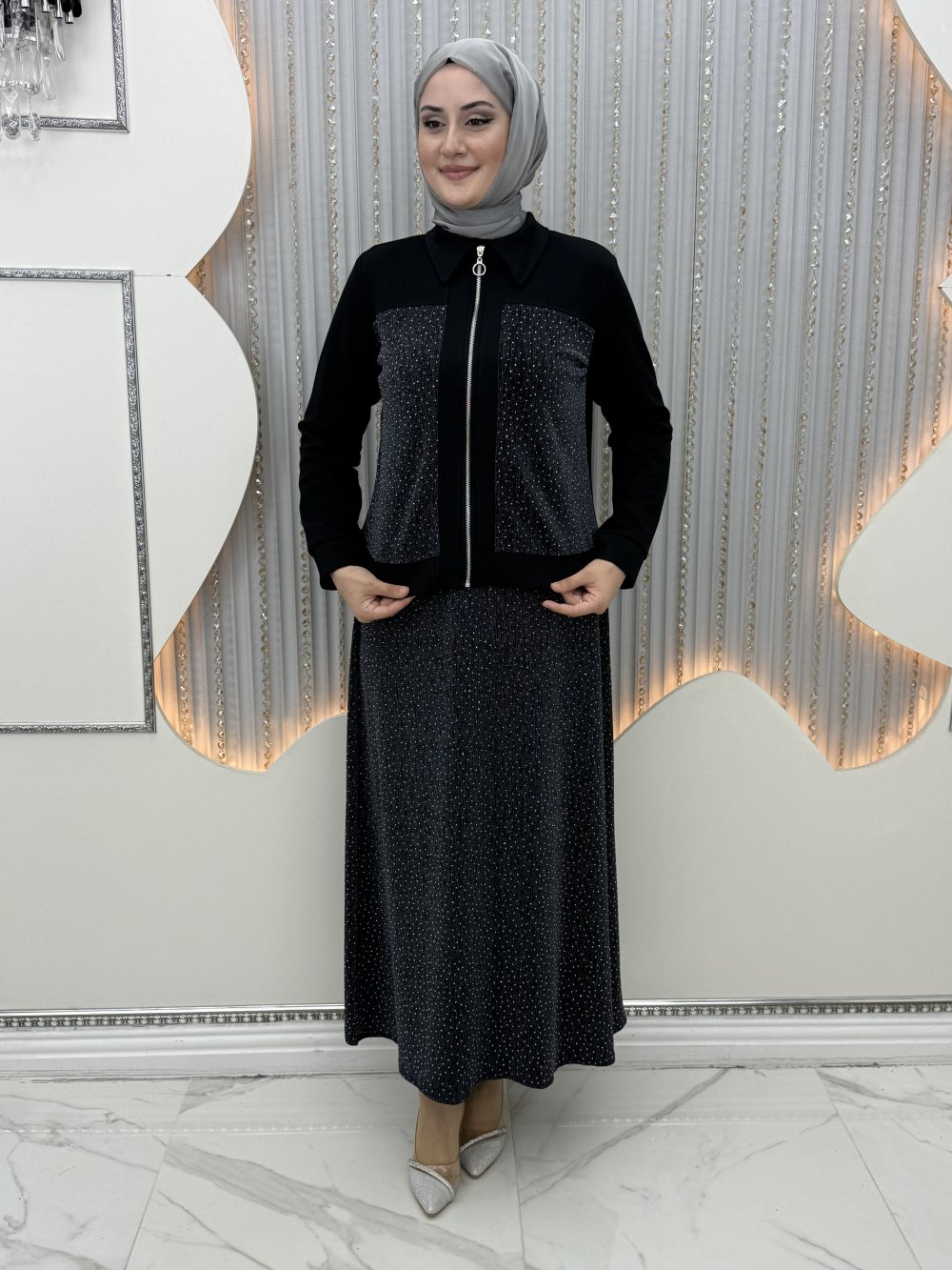 Deste Elbiseli Hırka Gri