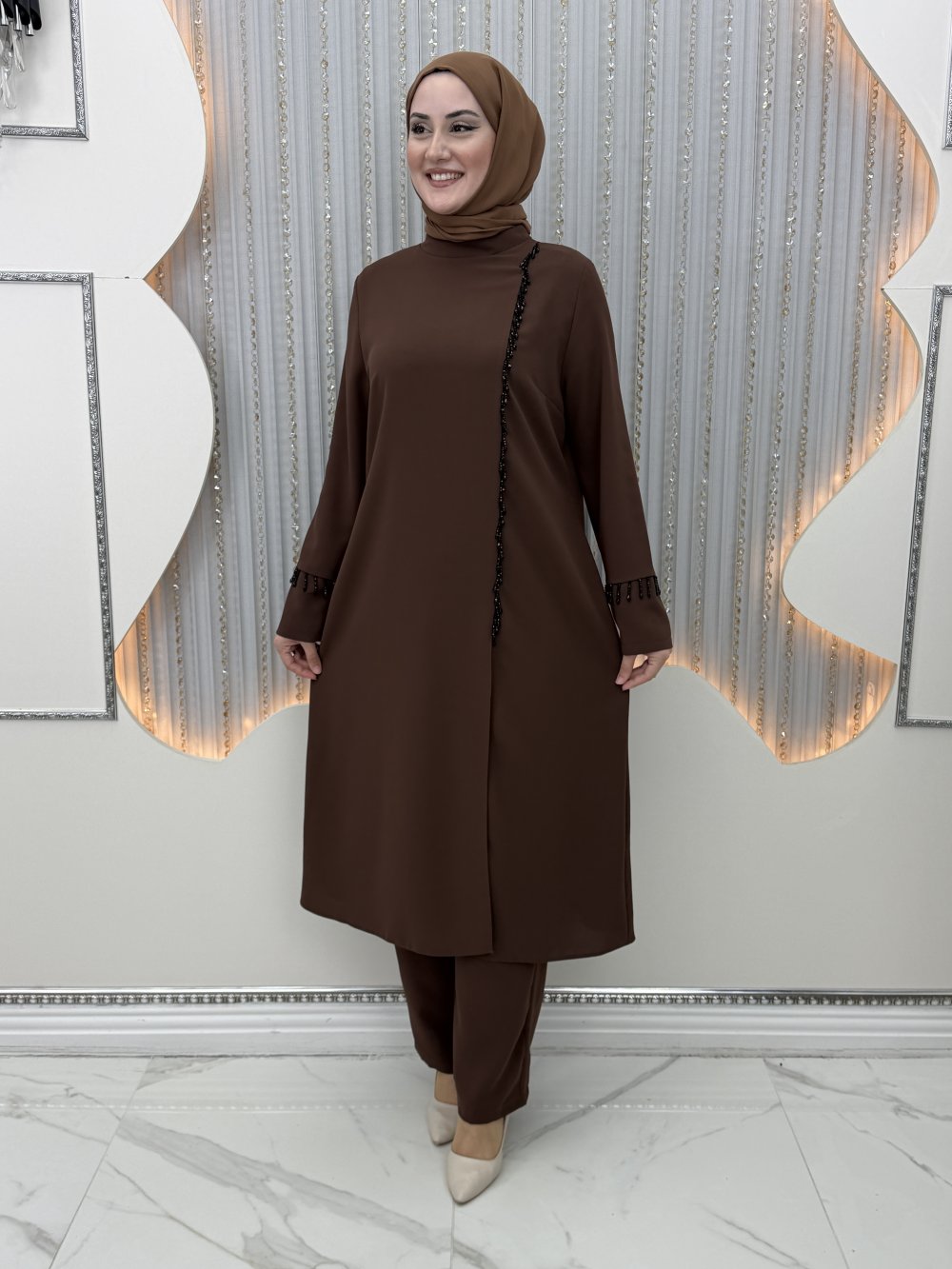 Efila Pantolonlu Takım Kahverengi