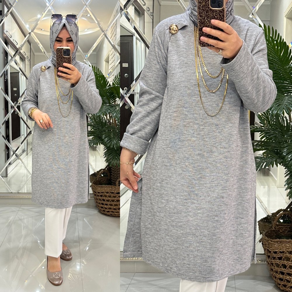 Ergül kazak triko kumaş gri