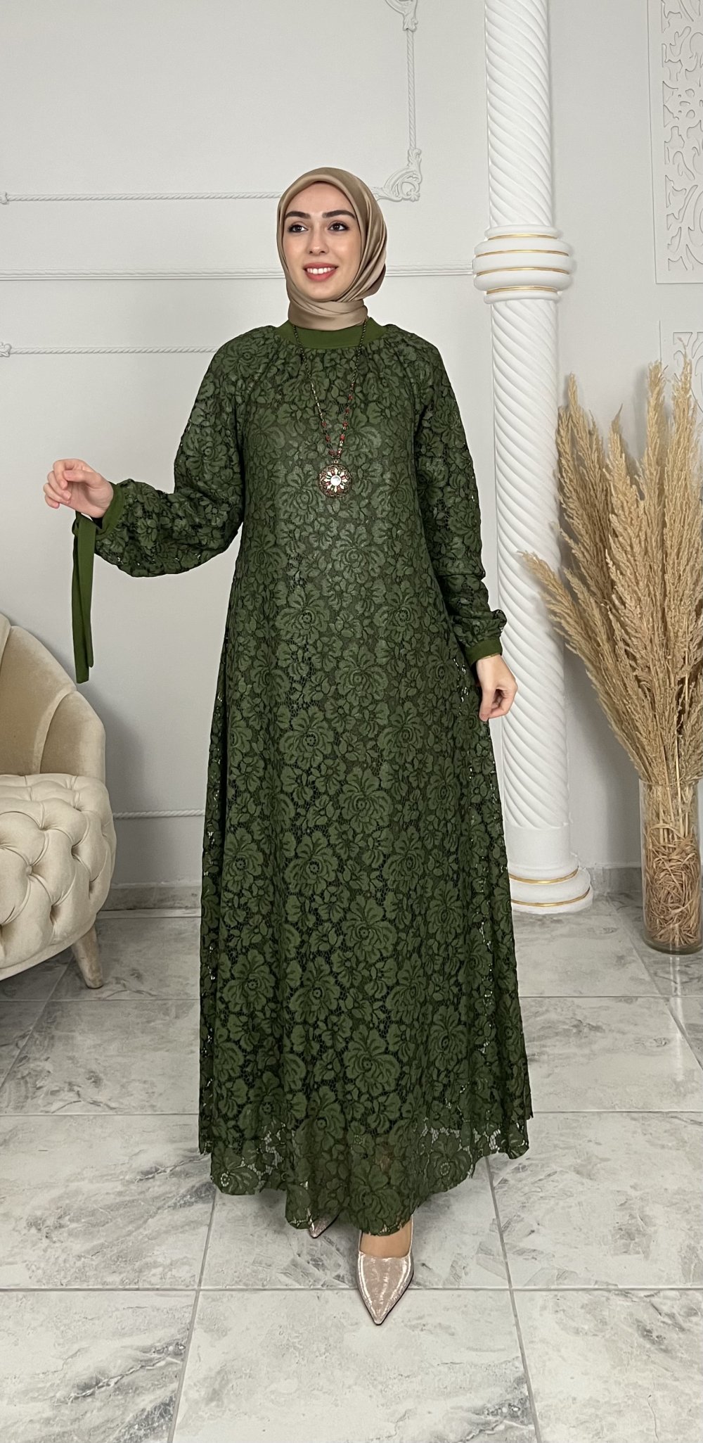 İç elbise Sandy esnek kumaş,dışı dantel detaylı tüldür.