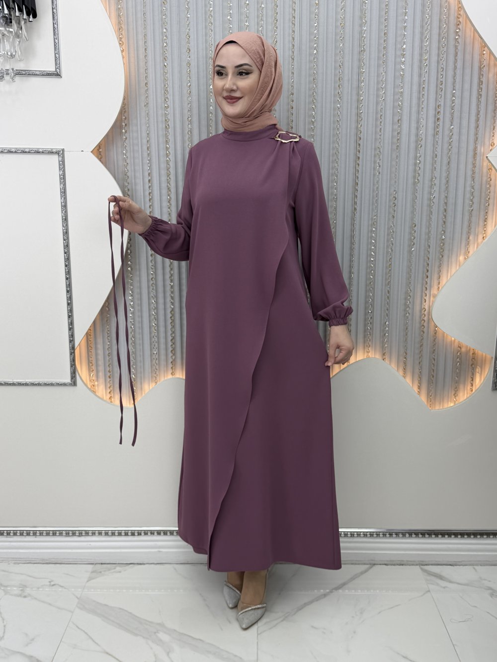 Tek omuz taş detaylı