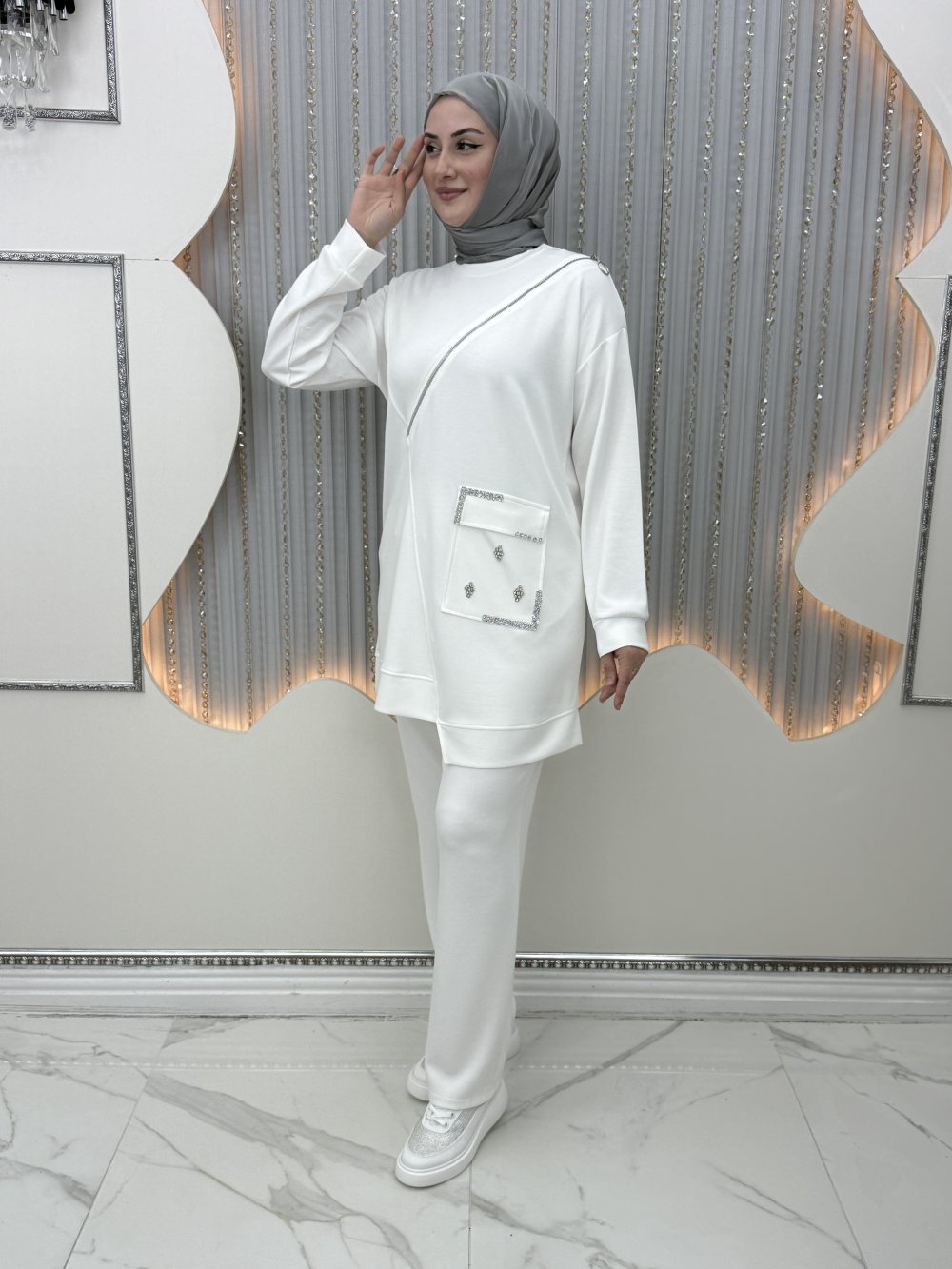 Ezel Pantolonlu Takım Beyaz