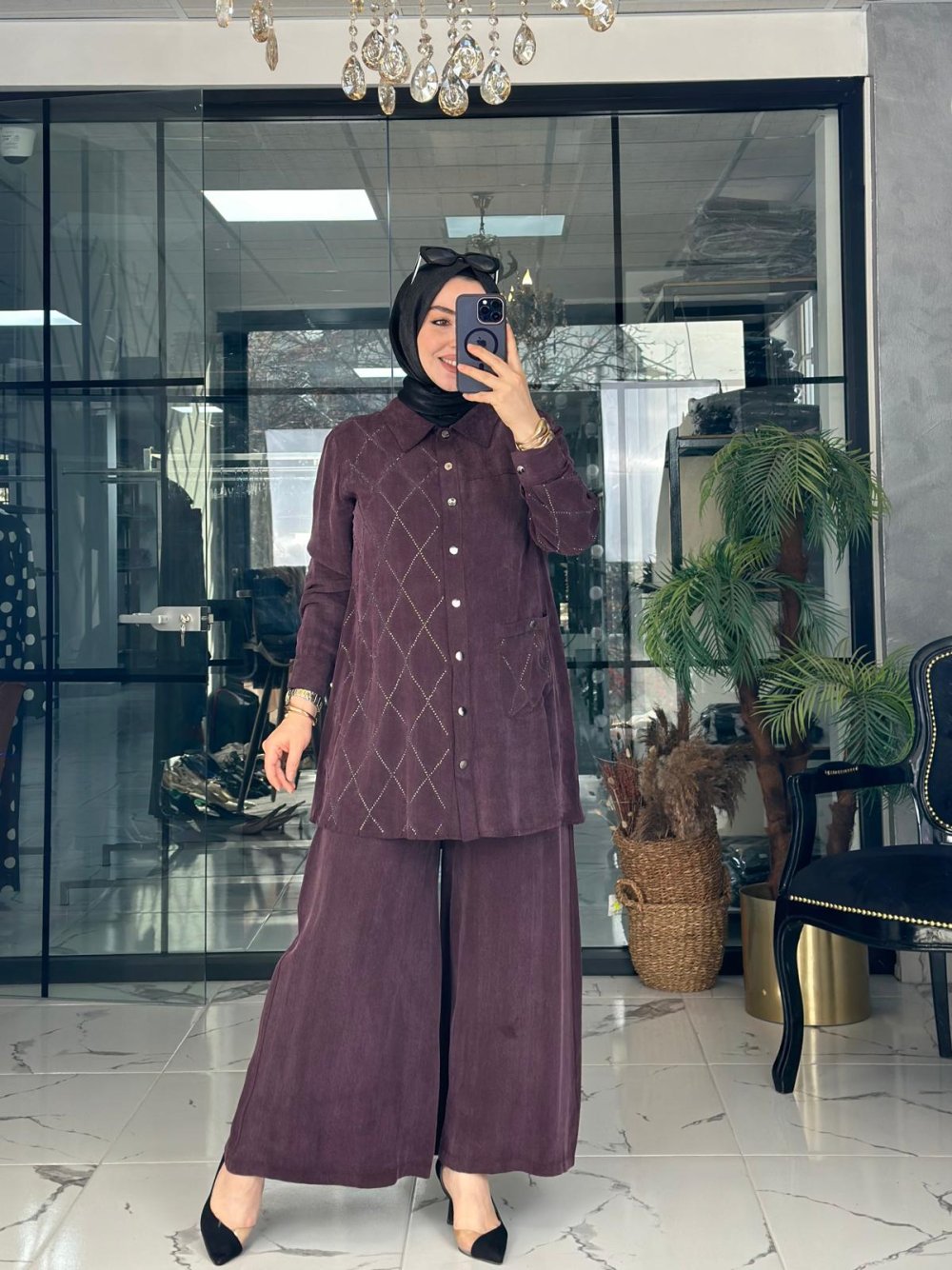 Kumaşı qupradır. Önü düğmelidir. Pantolon beli lastiklidir.