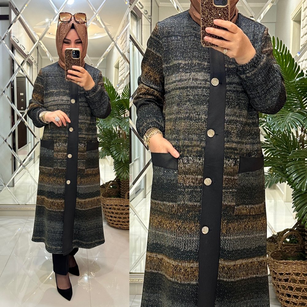 -Cep girişleri ve düğme boyu, deri görünümlü kumaş detaylı