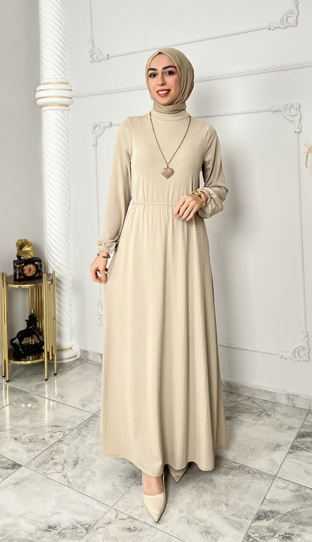 Gamze Elbise Taş Rengi