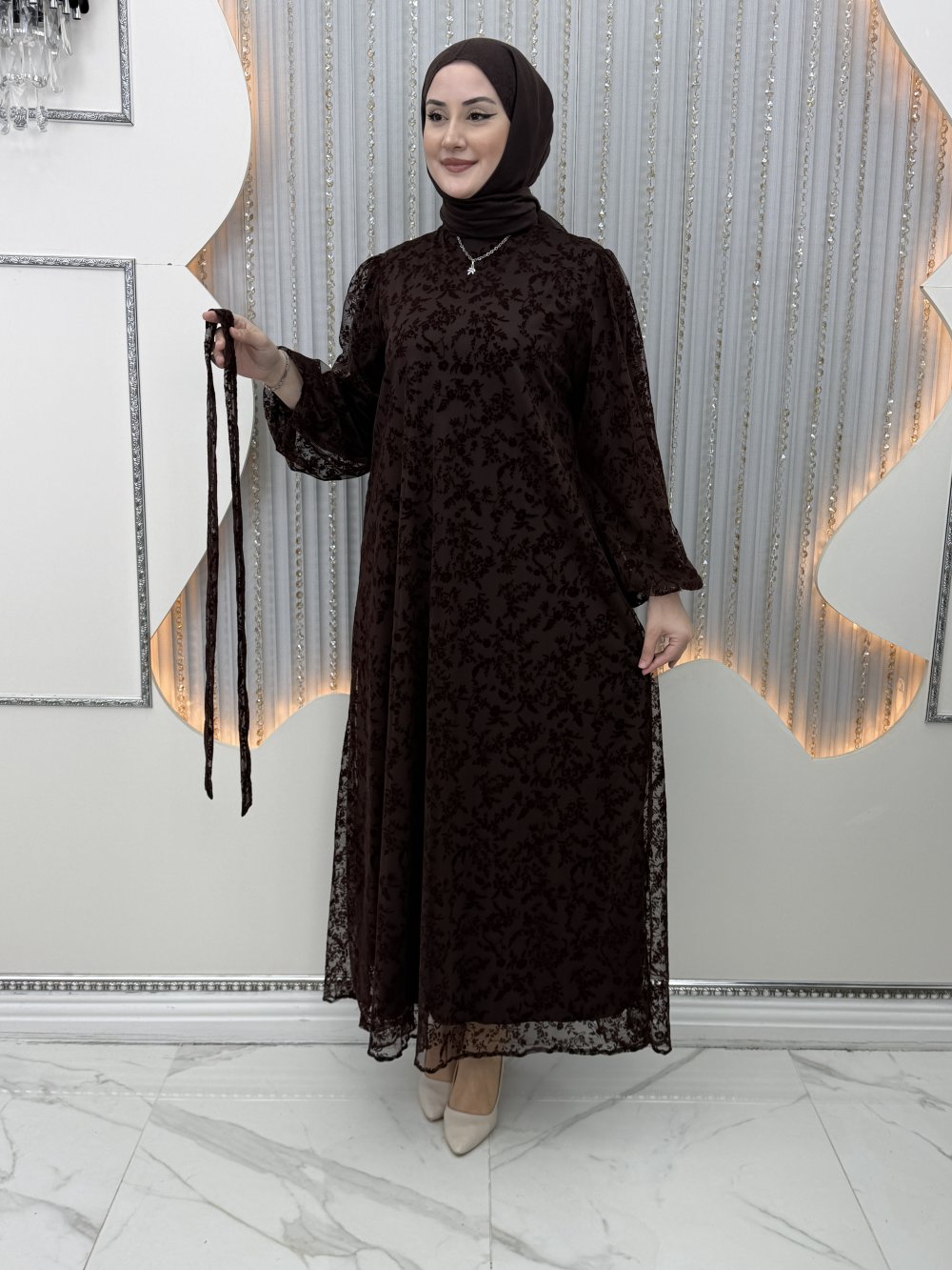 Güpür Elbise Kahverengi
