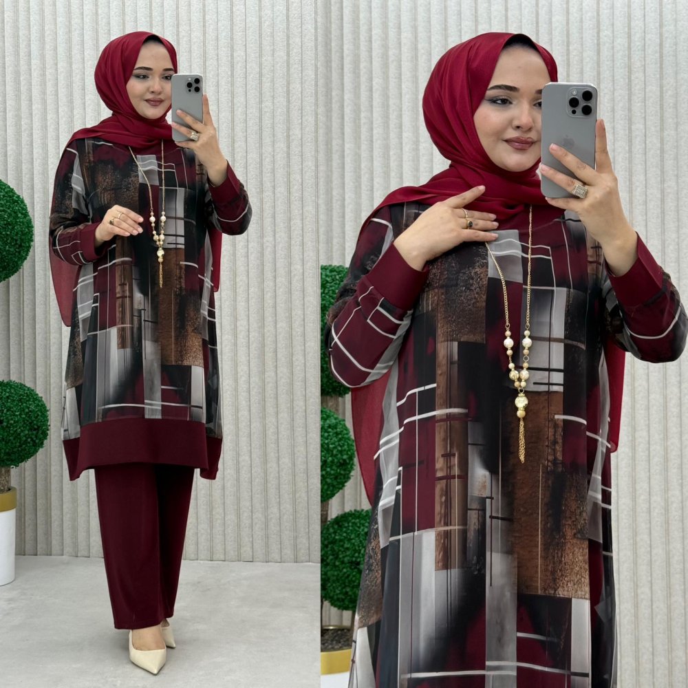 Hançer Pantolonlu Takım Bordo