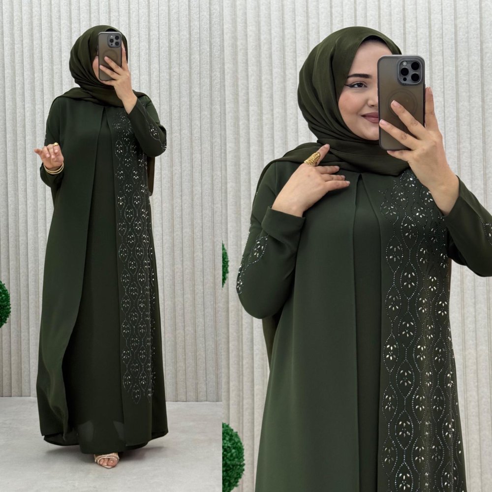 Hanedan Kapaklı Abiye Elbise Haki