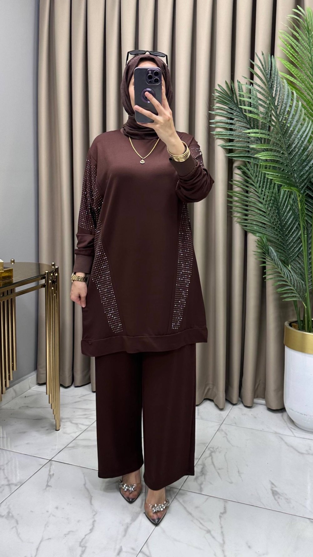 Hanımeli Taşlı Takım Kahve
