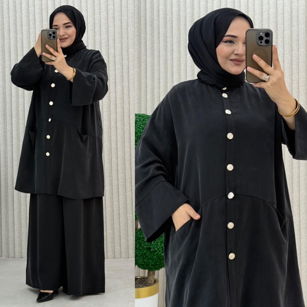 ? 3 Beden Göğüs 68 cm Tunik Basen 74 cm Pazu 24 cm Pantolon Bel açık 64 cm