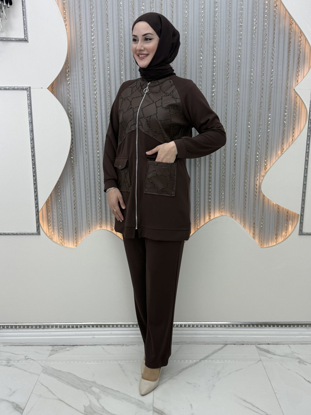 Hazel Pantolonlu Takım Kahverengi