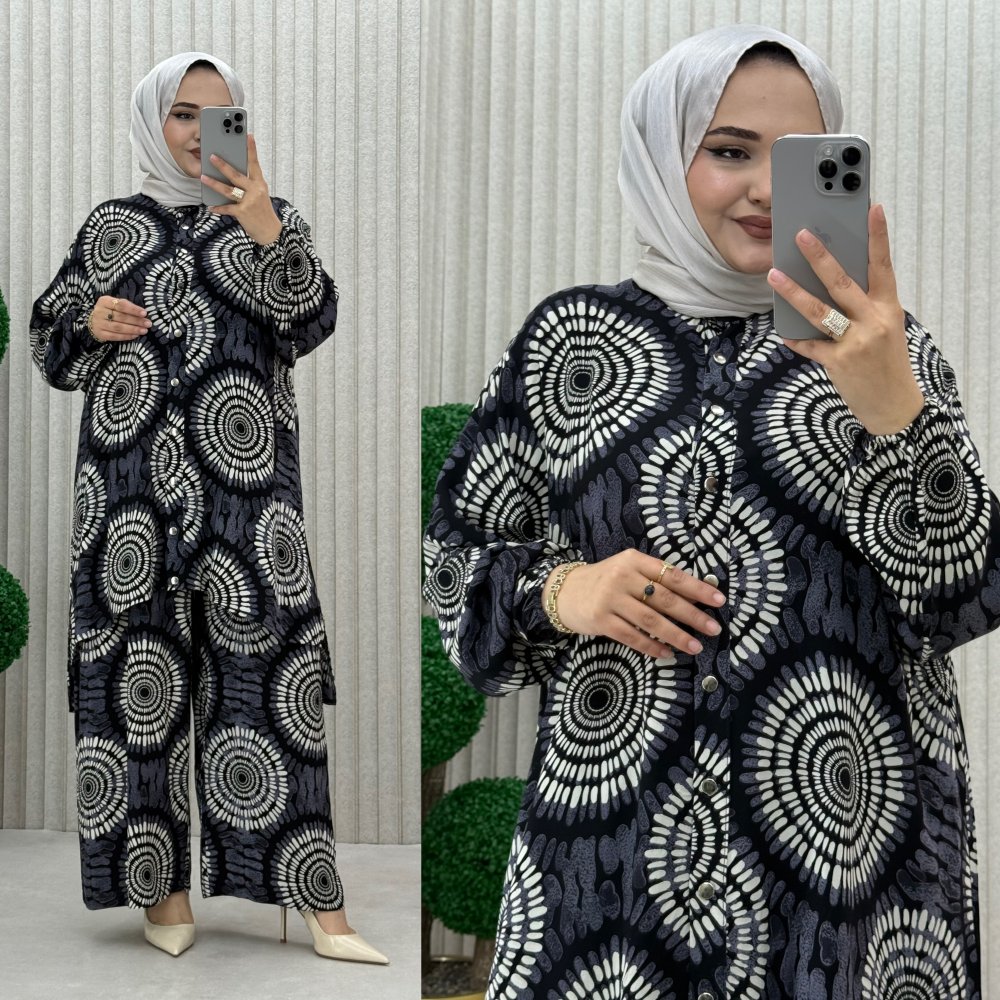 ?46 beden Göğüs 64 cm Tunik Basen 75 cm Pazu 27 cm Pantolon Bel açık 64 cm