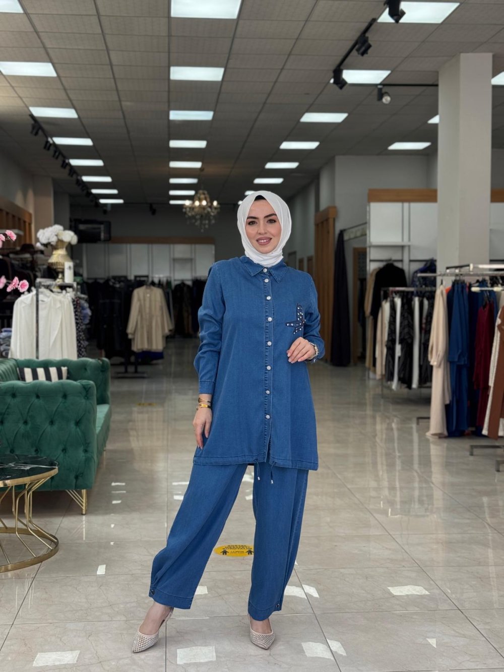 Tensel yumuşak kot kumaştır. Önü düğmelidir. Pantolon beli lastiklidir.