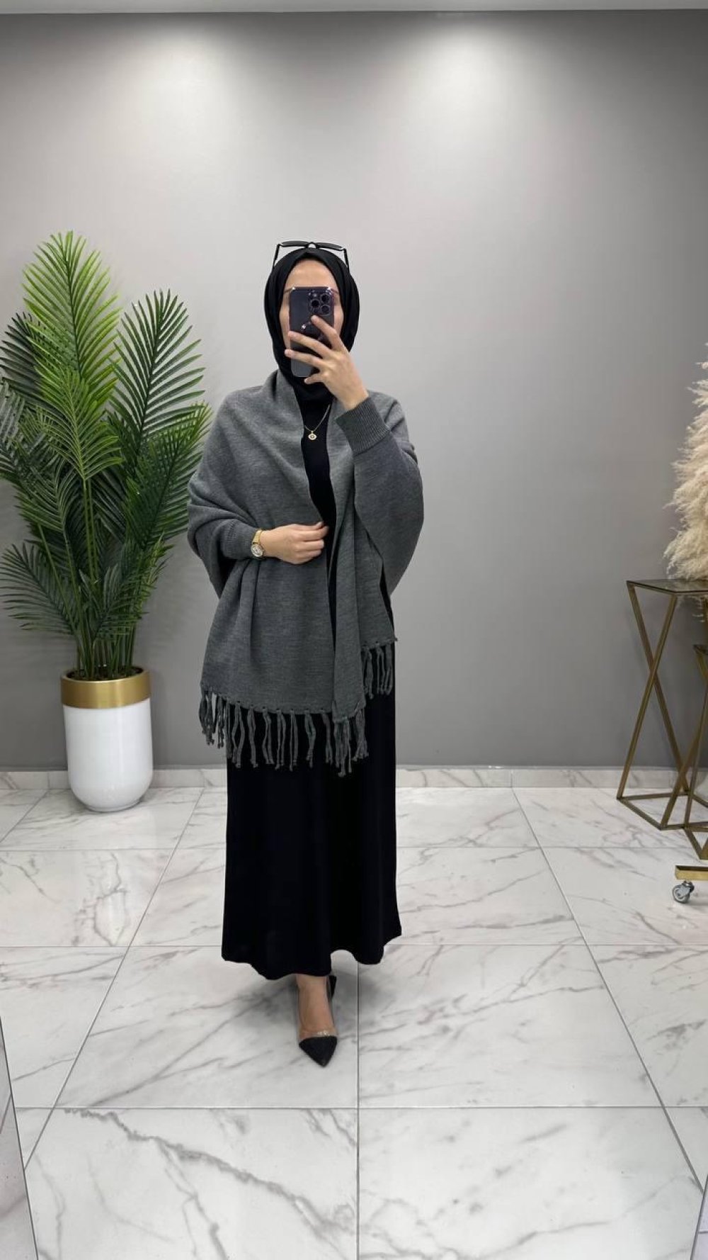 Kollu Şal Panço Füme