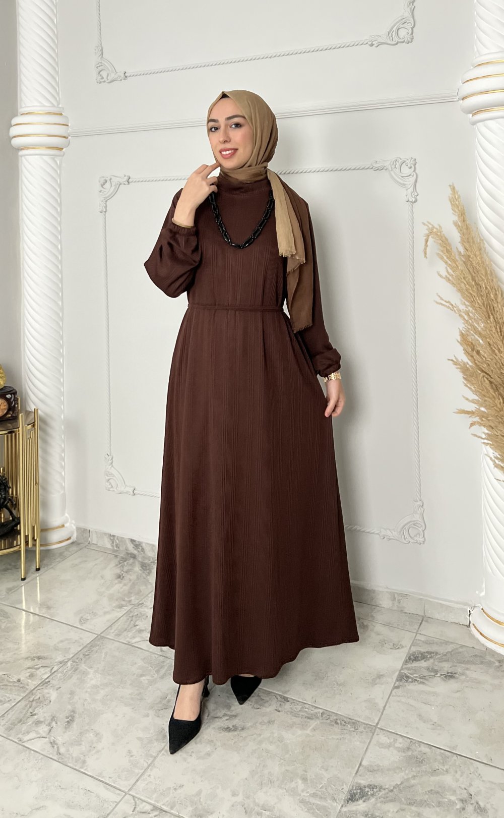 Kolye Hediyeli Gülçin Elbise Kahverengi
