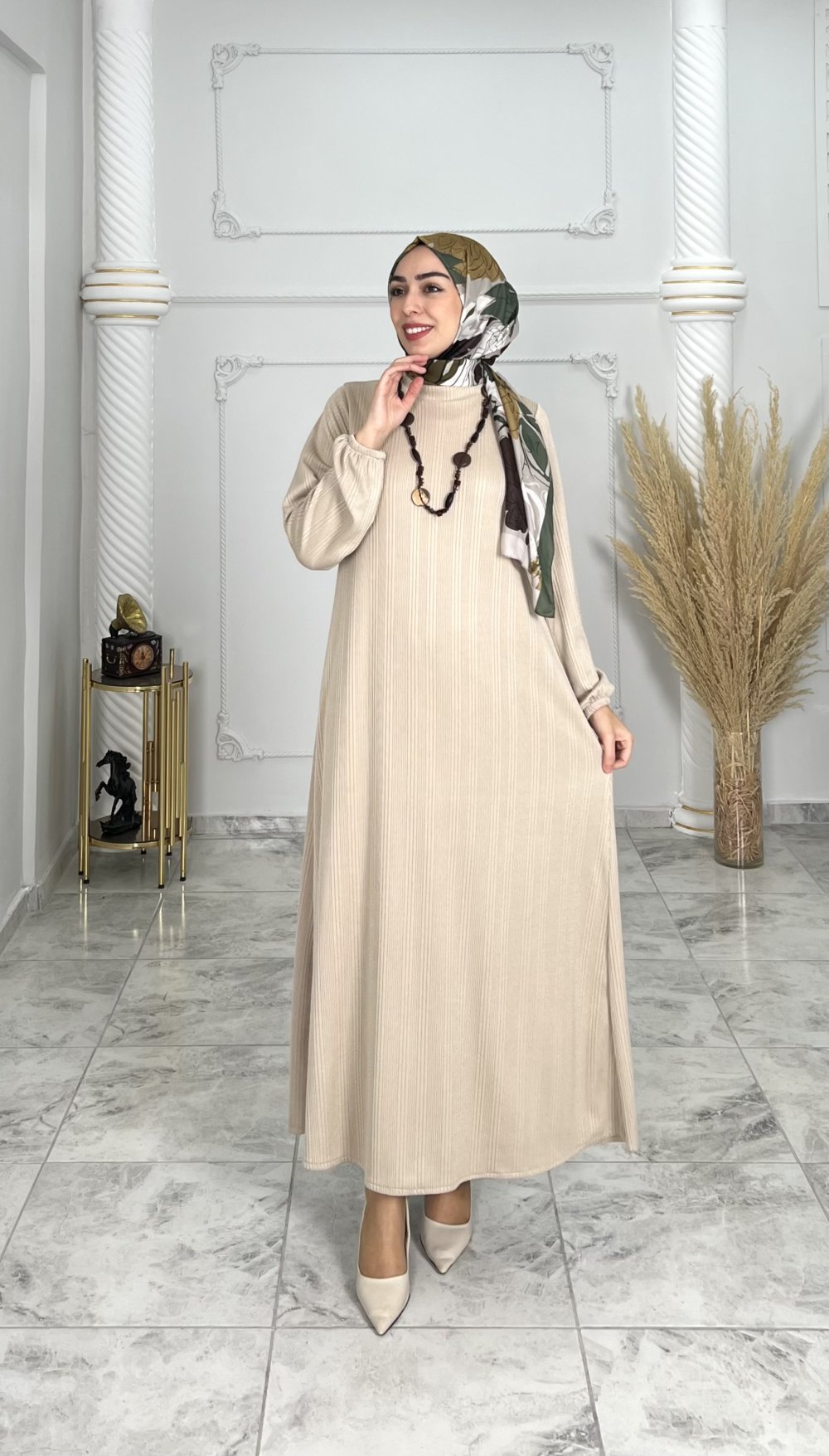 Kolye Hediyeli Gülçin Elbise Krem