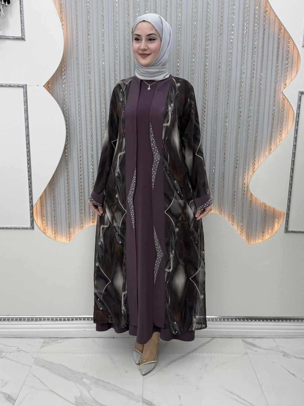 Kumsal Elbiseli Hırka Mürdüm
