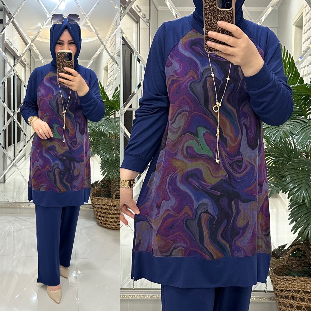 Maya ipek qupra takım mavi