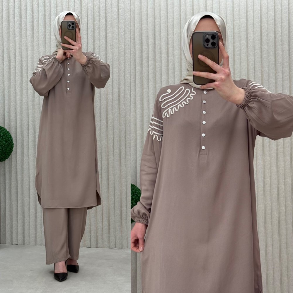 ? 48 beden Göğüs 58 cm Tunik Basen 62 cm Pazu 21 cm Pantolon Bel açık 62 cm