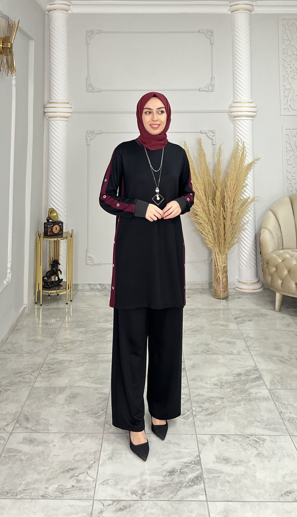 Melike Takım Siyah Bordo