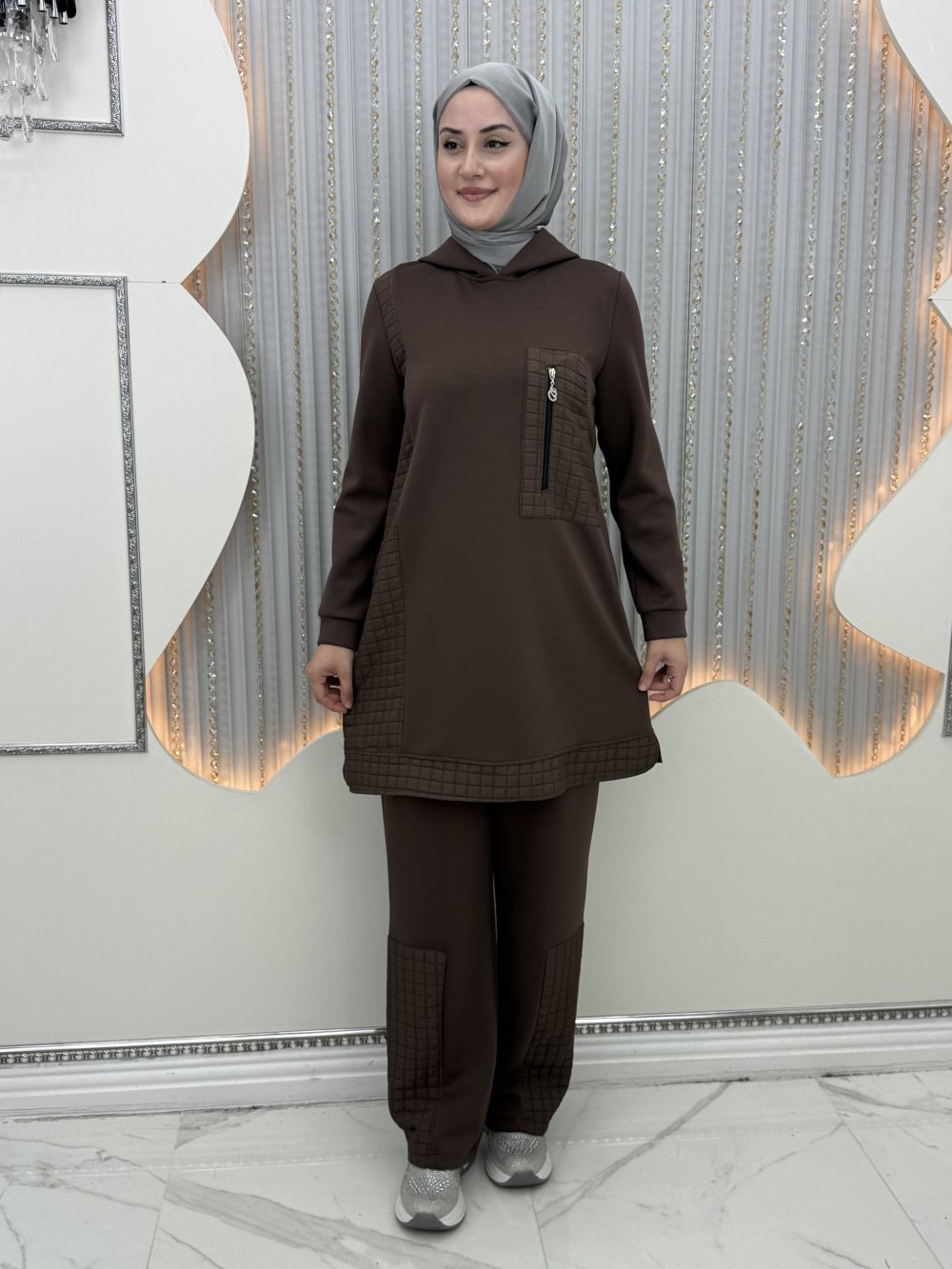 Pantolon etek ucu kapitone detaylıdır