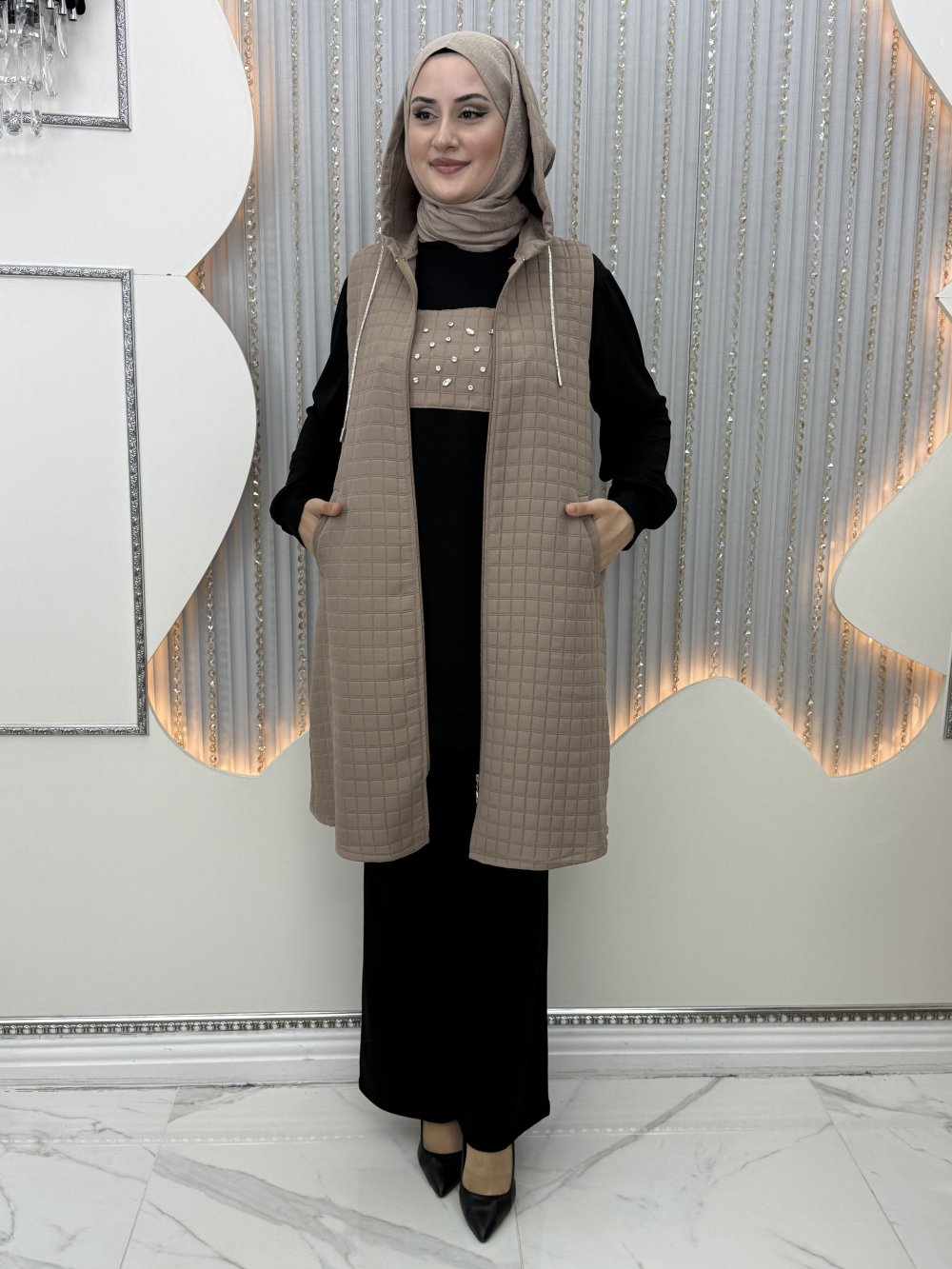 iç tunik önü taş detaylı