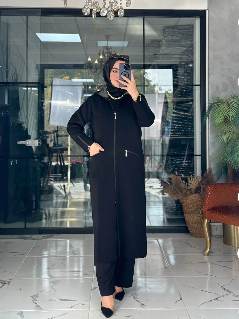 Kumaşı çelik örmedir. Önü ve cepleri fermuarlıdır. Kapüşonu çıkmaz.