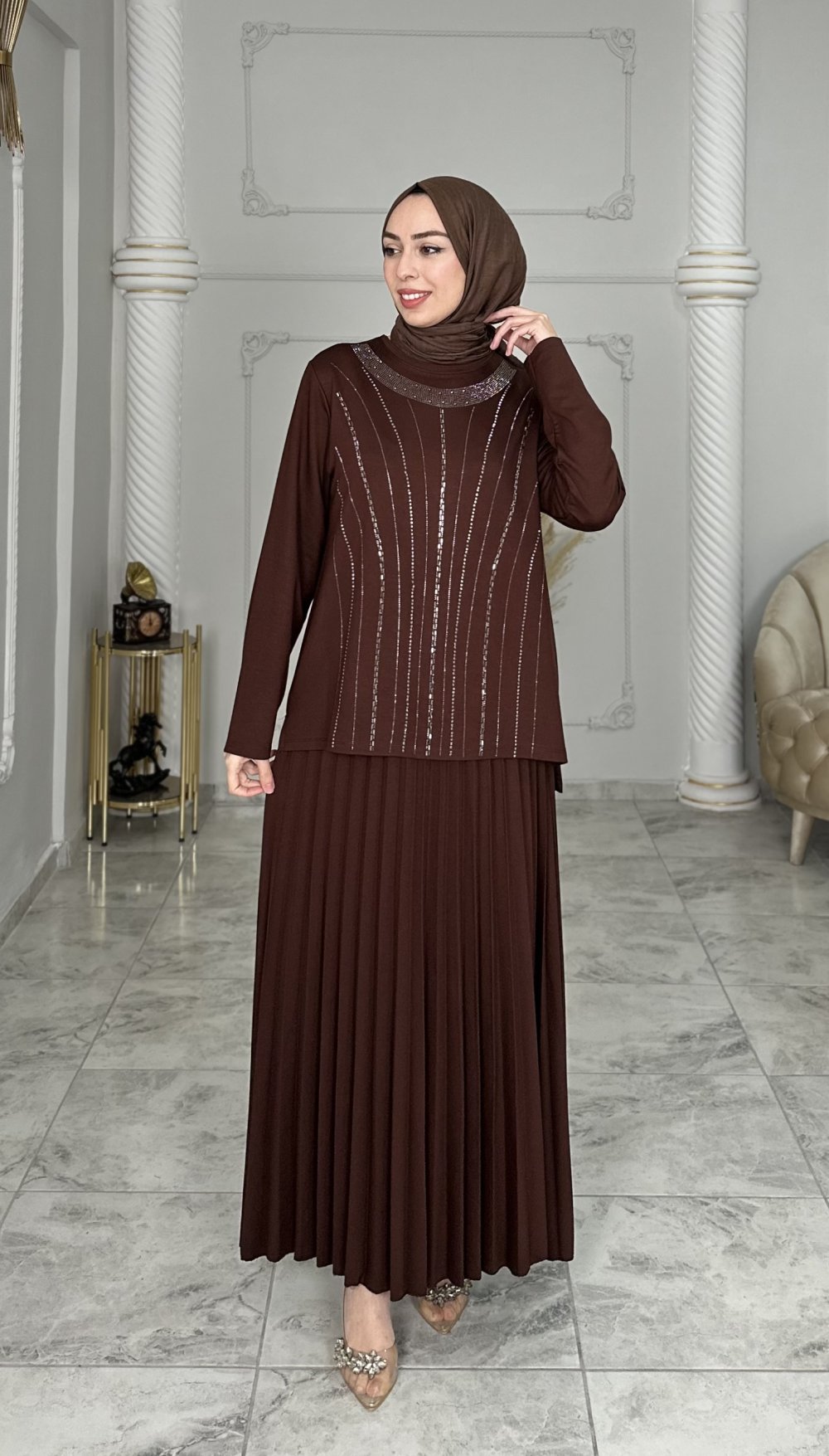 Tunik ön kısmı taş detaylı