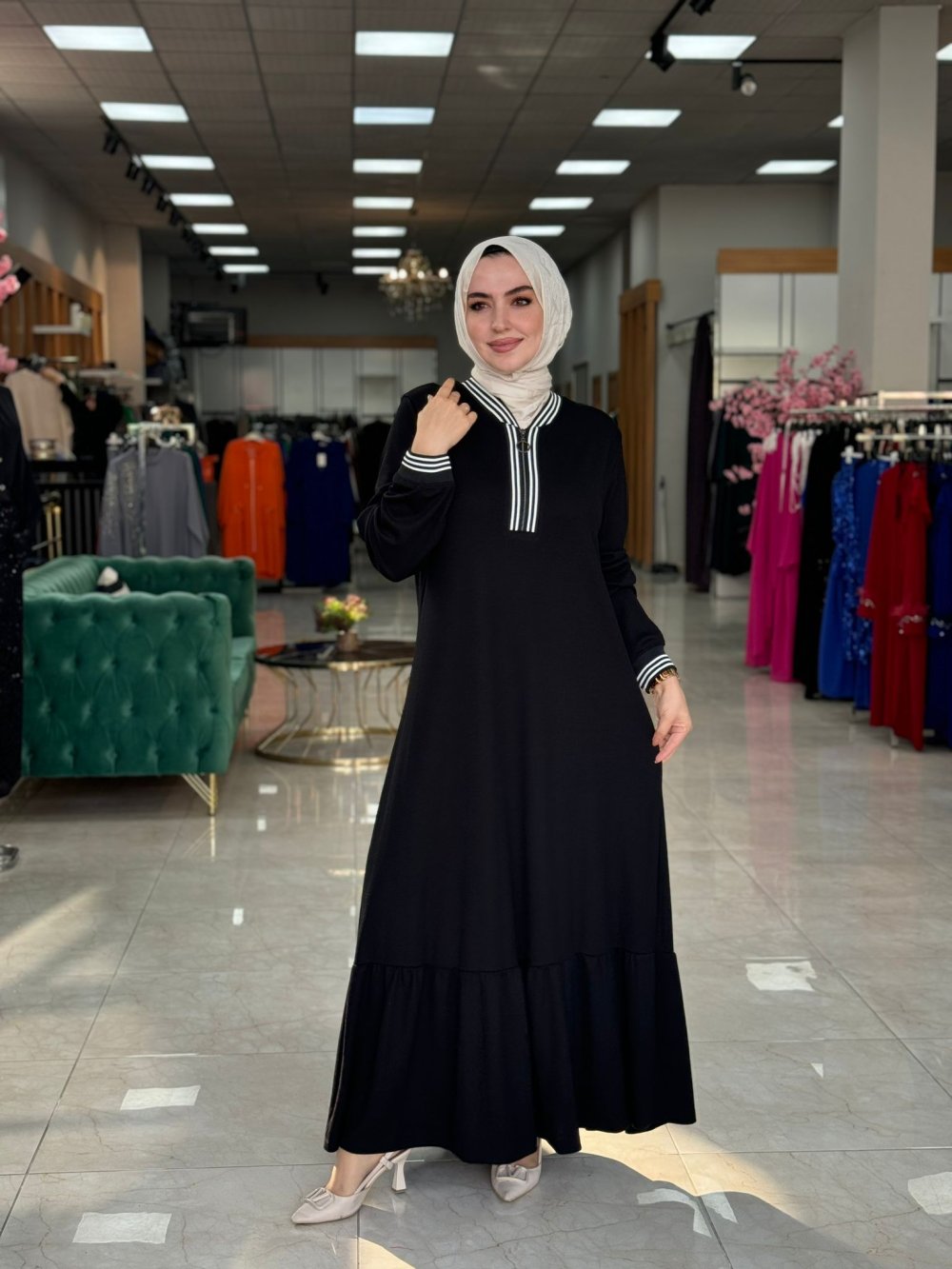 Name Yaka Biyeli Elbise-Siyah