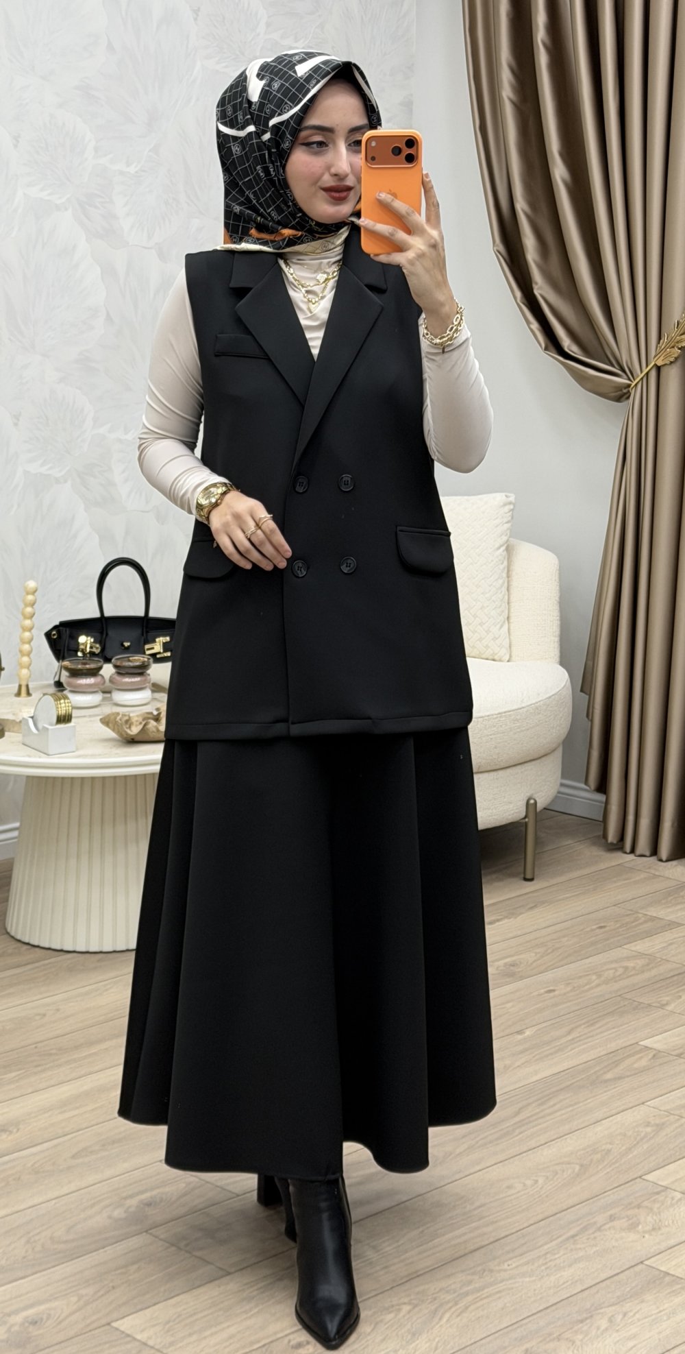 Nare Etek Takım,hem iş hem de günlük hayatınızda rahatlıkla tercih edebileceğiniz çok yönlü bir parçadır. Şıklığı konforla buluşturan bu tasarım, sezonun en gözde modellerinden biri olacak