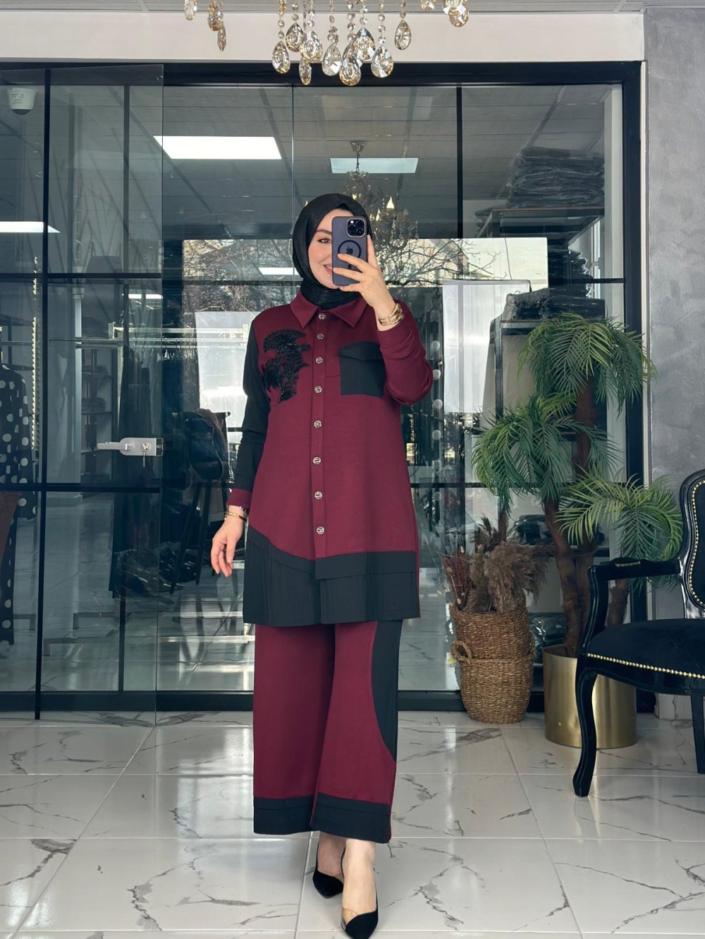 Kumaşı oyshodur. Paraşüt kumaş kombinlidir. Önü düğmelidir.