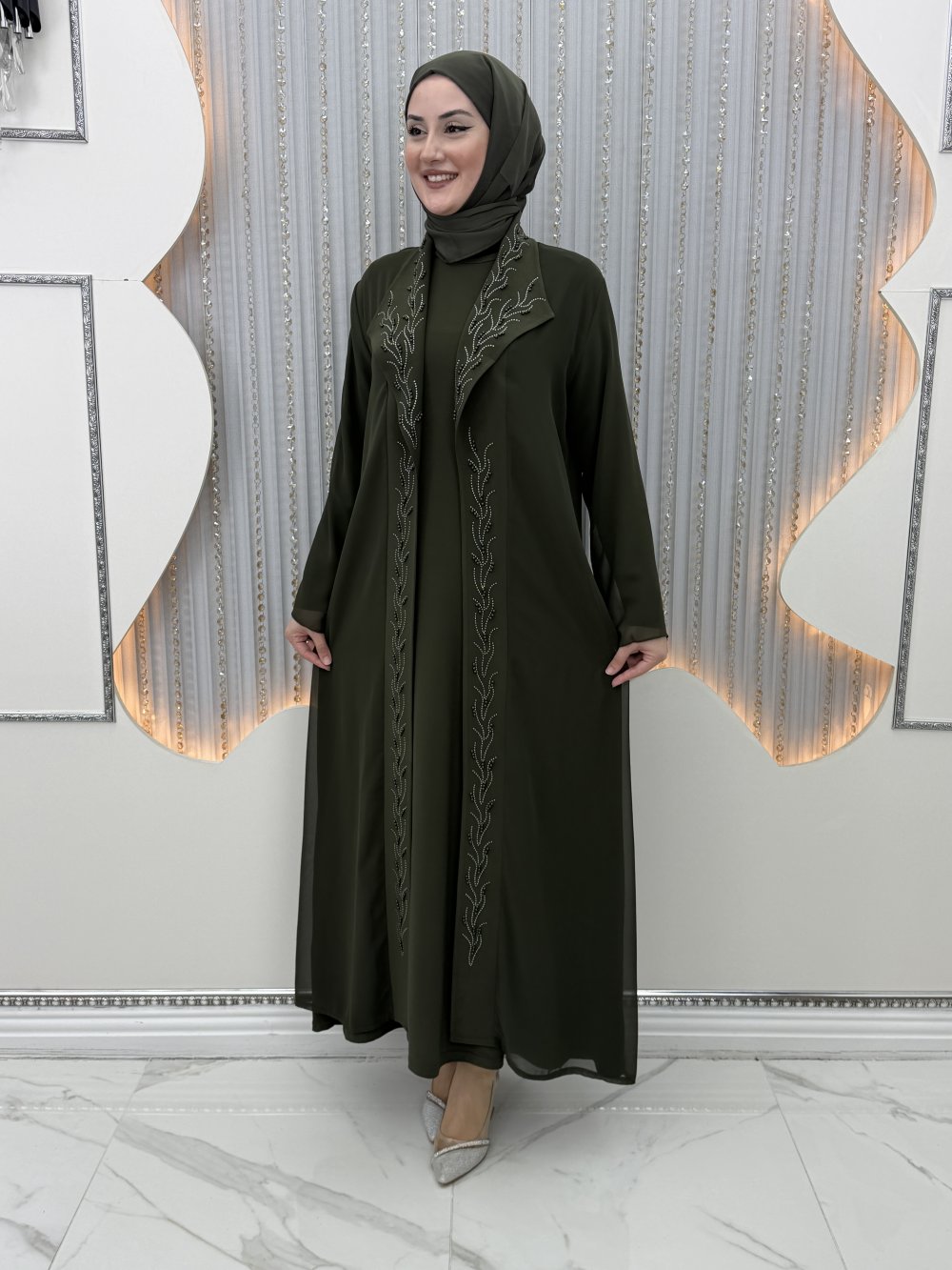 Nefsun Elbiseli Hırka Haki