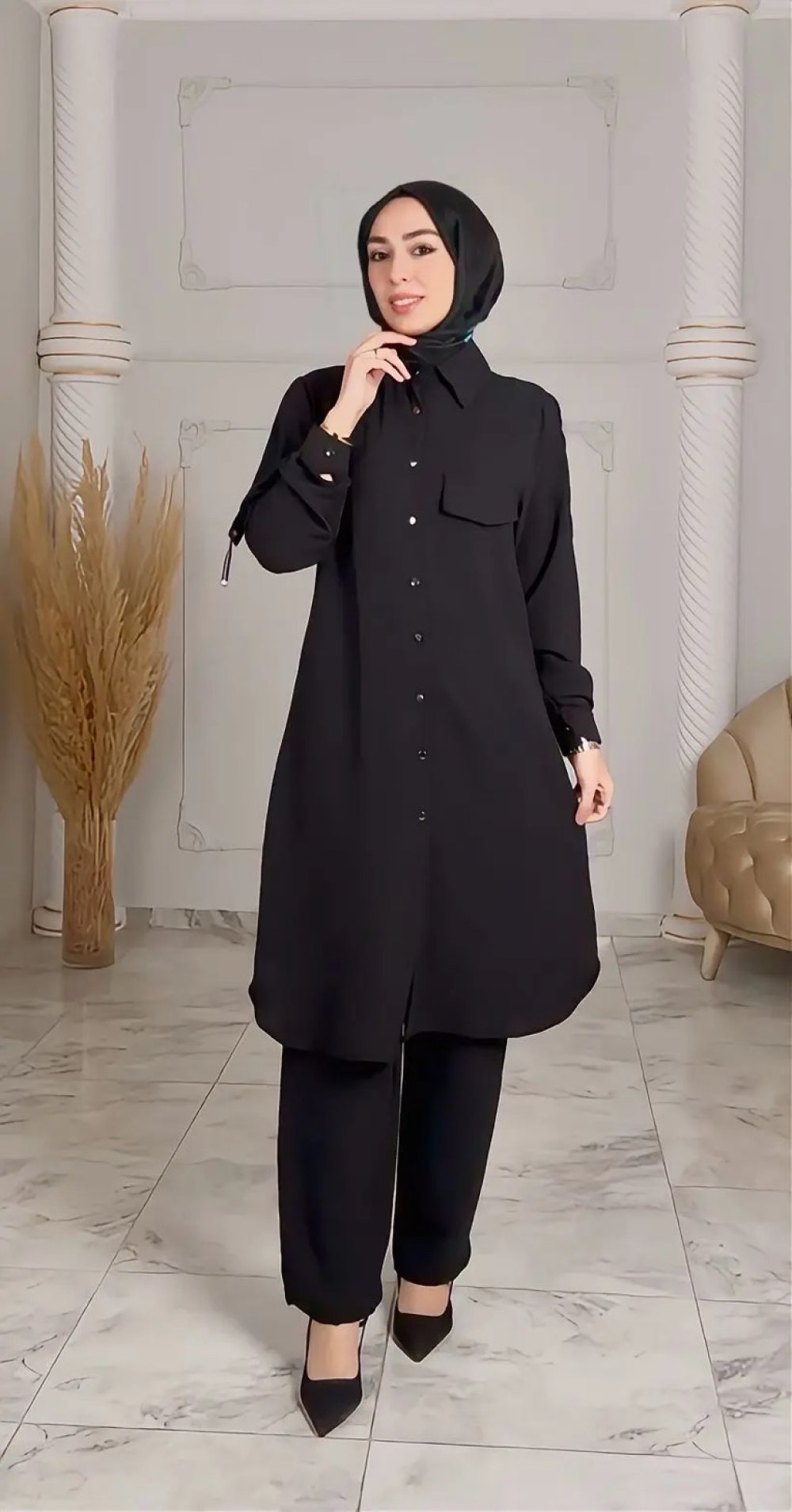Tunik boydan metal düğmeli kolları  taş süslemedir