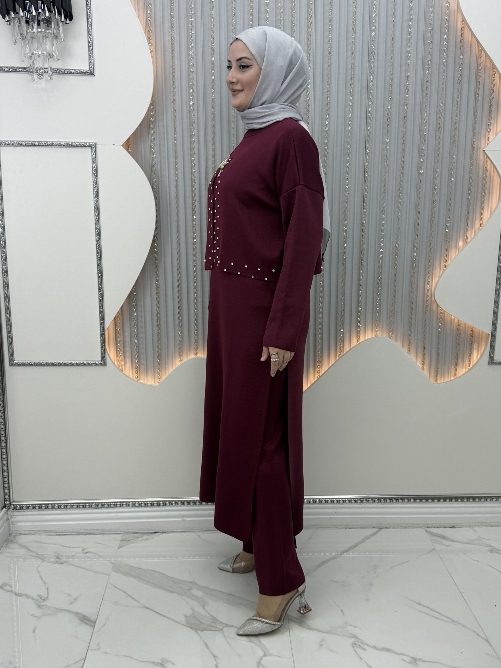 Omay 3’lü takım Bordo