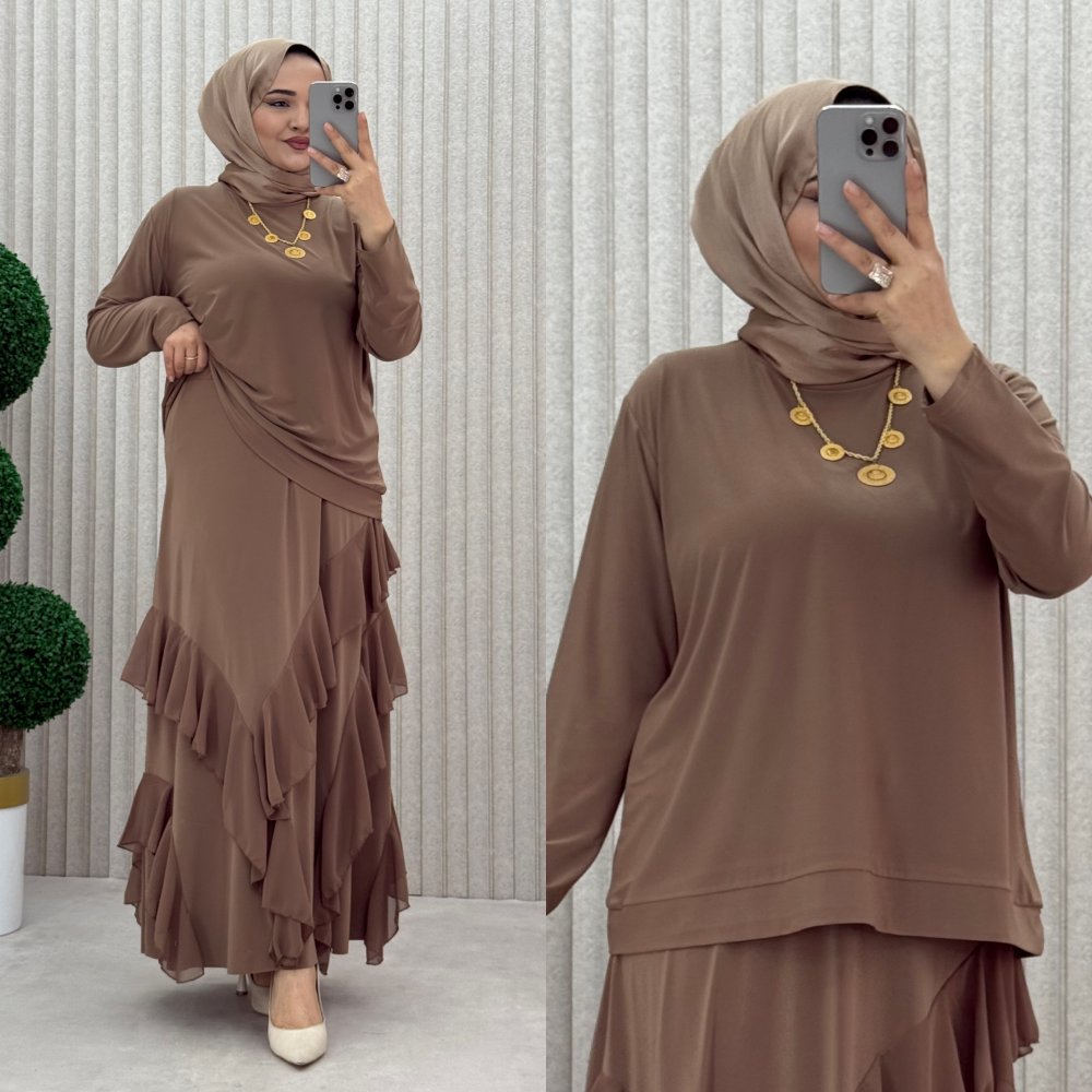 ? 2 beden Göğüs 64 cm Pazu 19 cm  Tunik basen 64 cm Etek Bel açık 52 cm Etek basen 62 cm