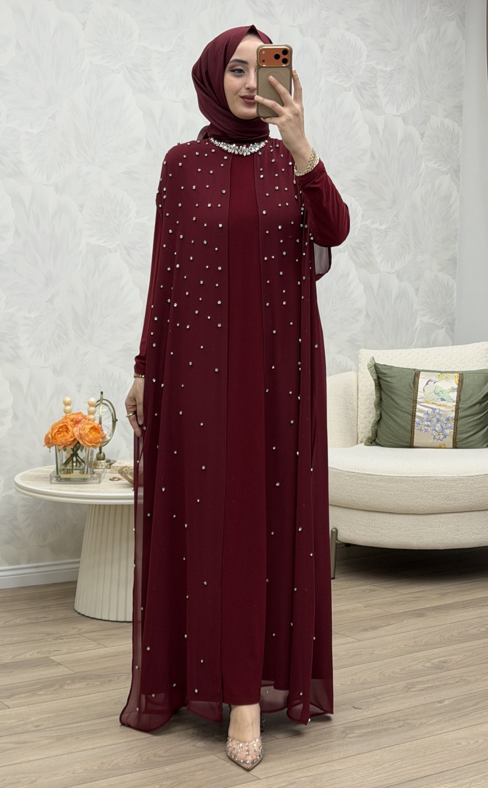 Parıltı Abiye Bordo