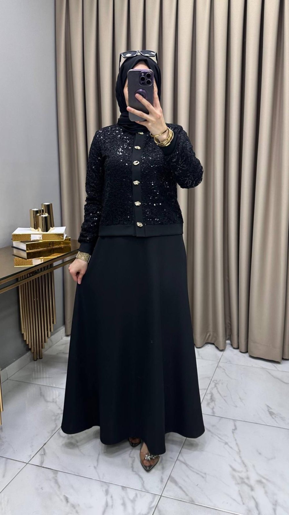 Pullu Etekli Takım Siyah