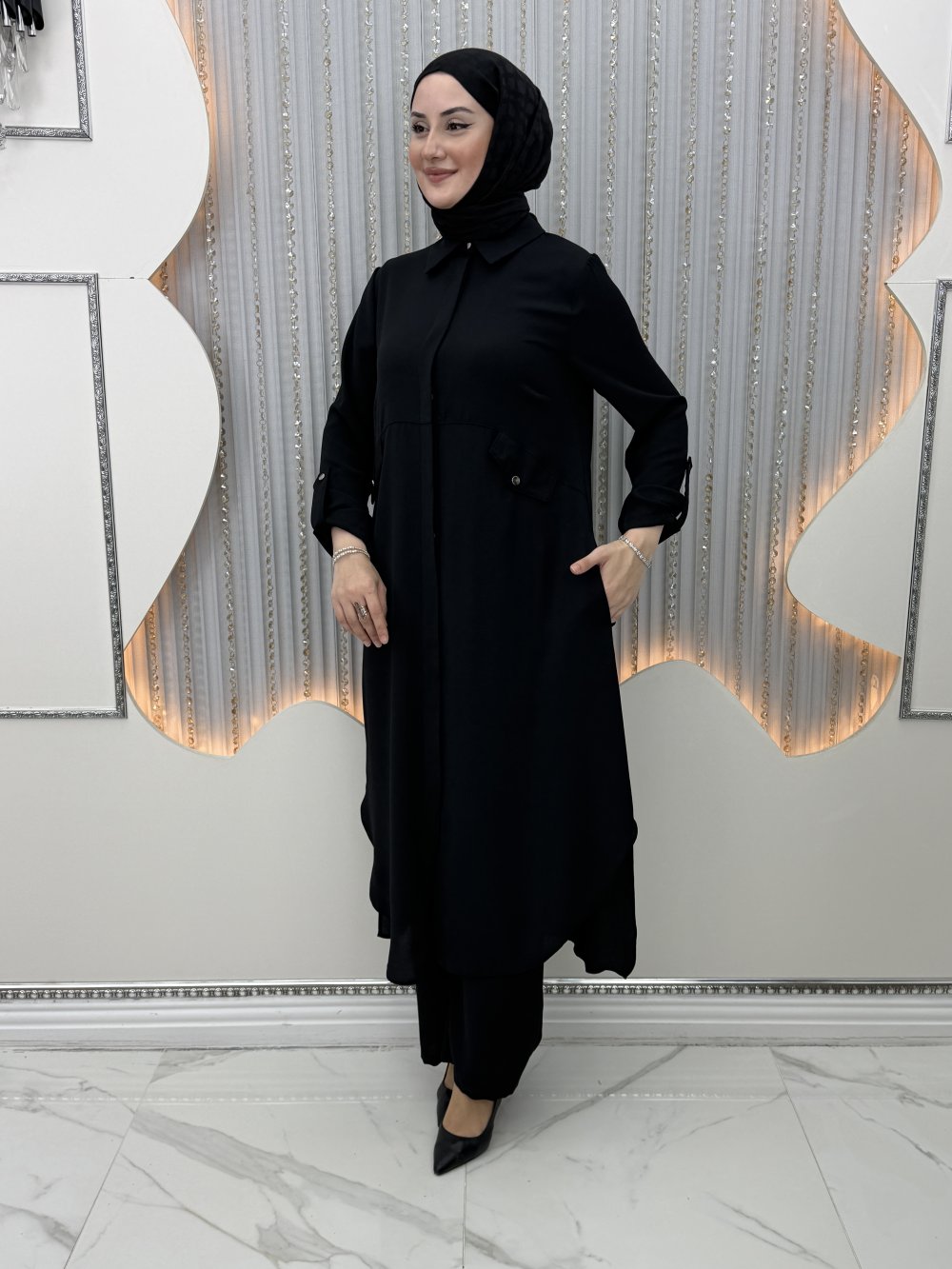 Riya Pantolonlu Takım Siyah