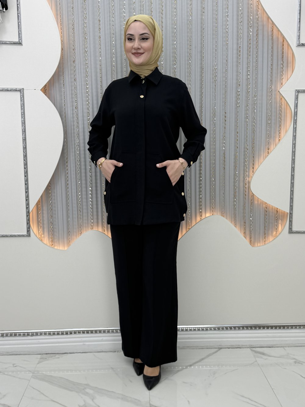 Sahra Pantolonlu Takım Siyah