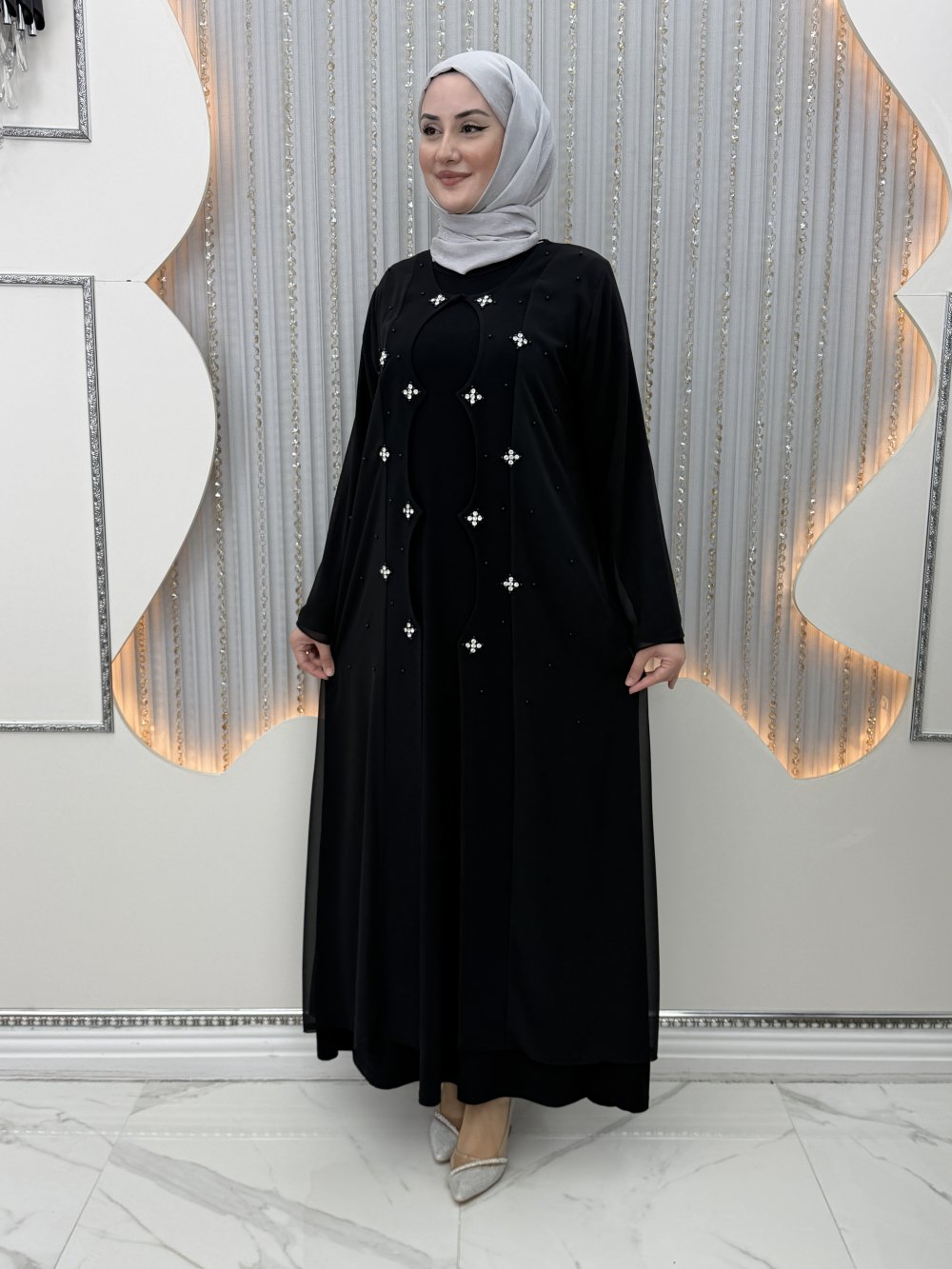 Salkım Elbiseli Hırka Siyah