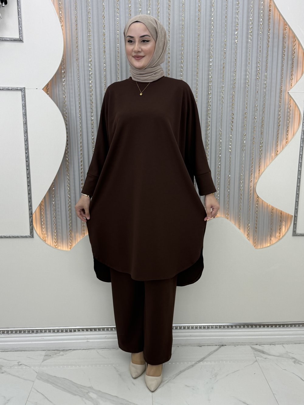 Şehzade pantolonlu takım Kahverengi