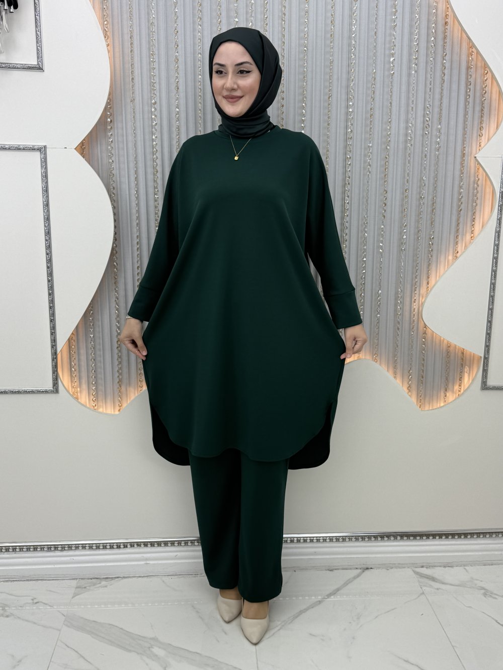 Şehzade pantolonlu takım Zümrüt