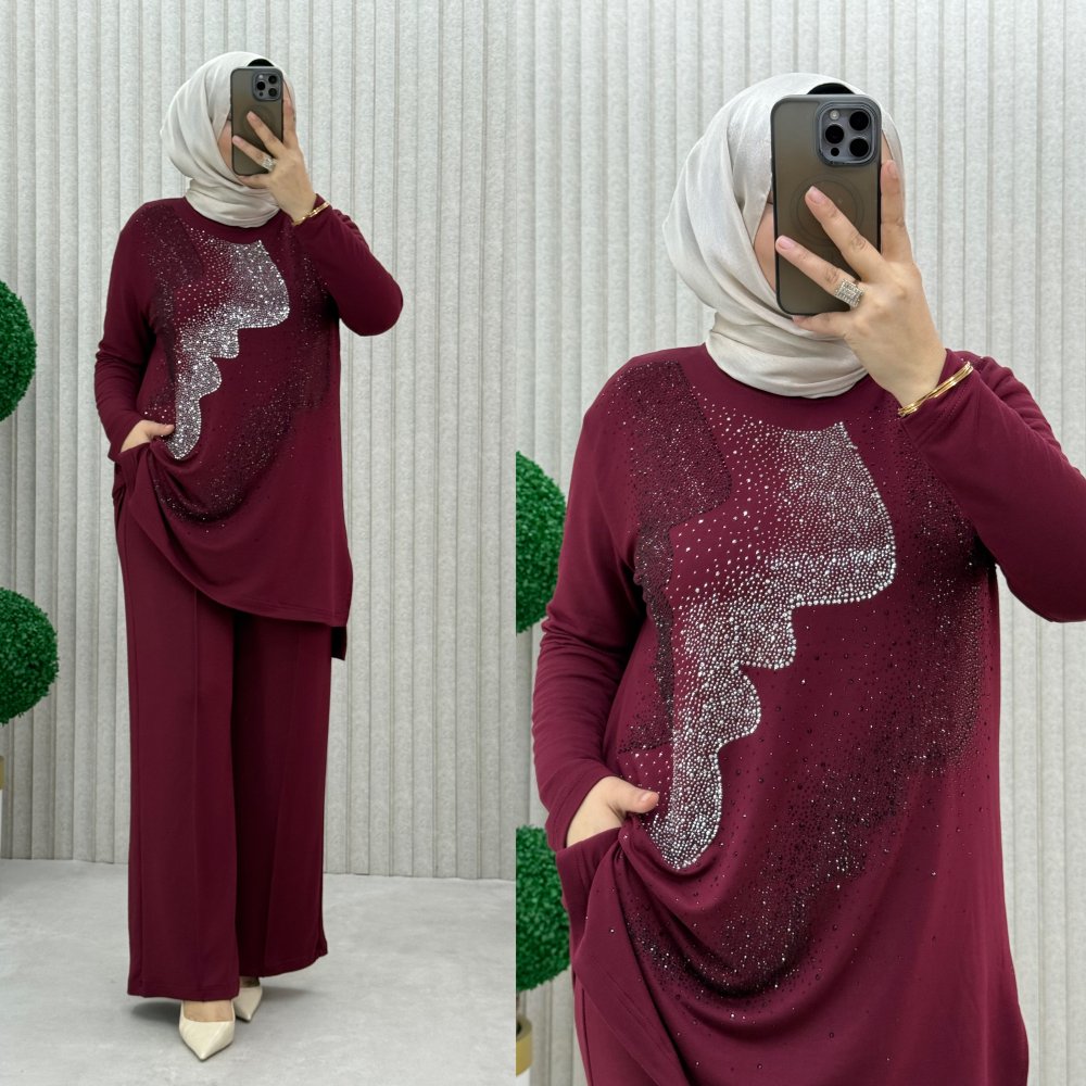 Sema pantolonlu takım Bordo